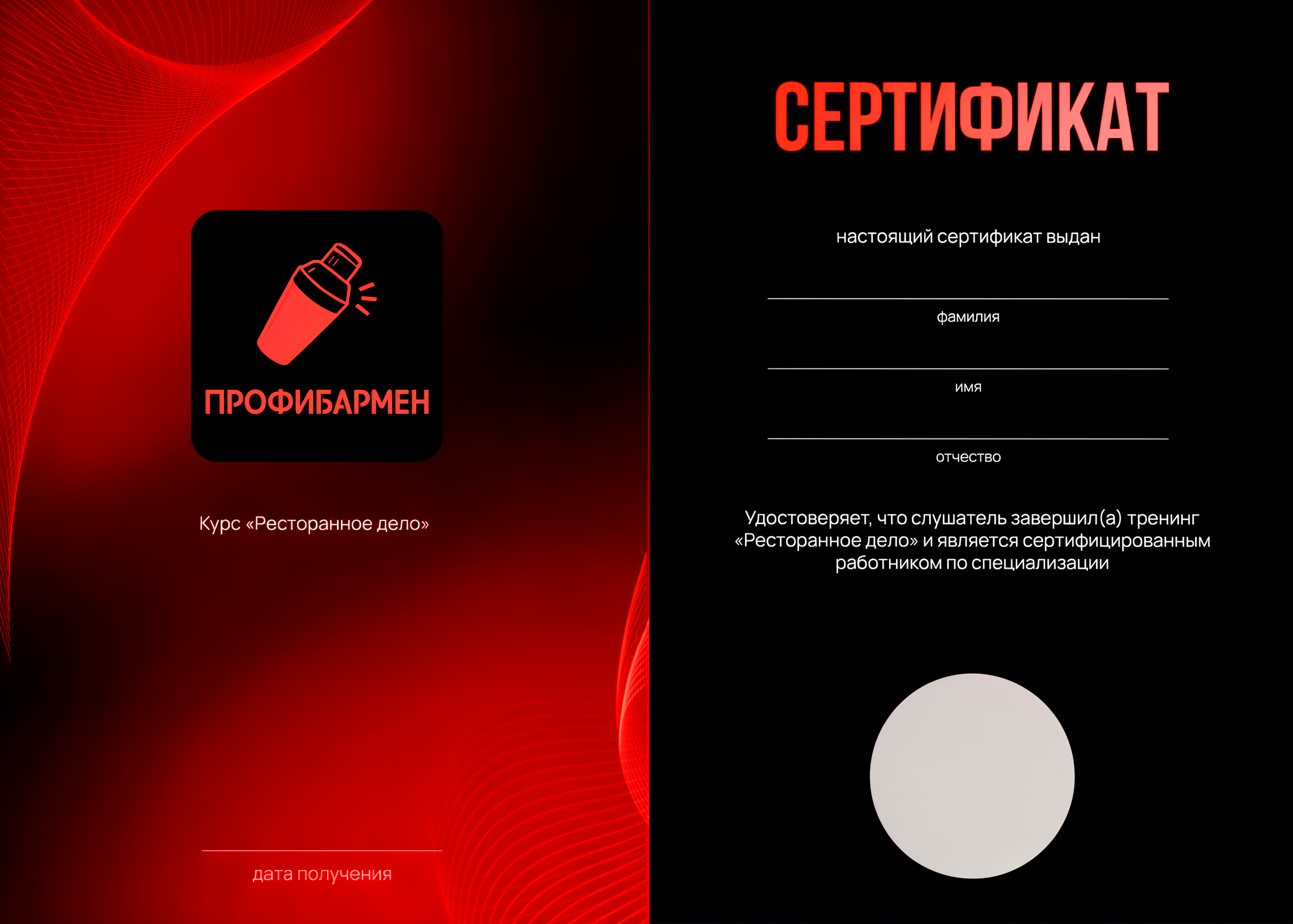 Сертификат о получении профессии
